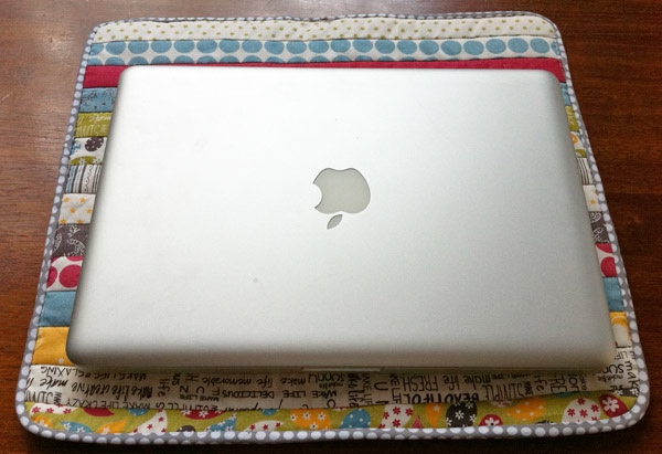 I am so excited to have finally made my trusty Mac laptop a cover. Â I was determined not to go out and buy a cover and make my own. Â It only took most of this year to get to it. Â Of course it took no time to make once I started. Â I made the pattern up as I went.