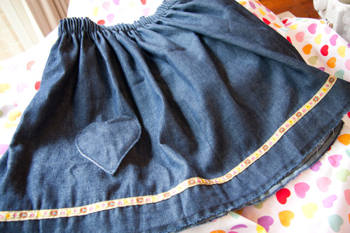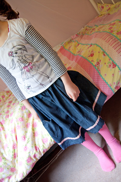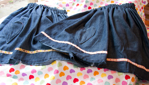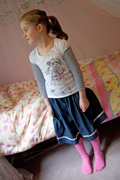 So, after a phone call to a local shop, chaos was averted with a quick trip and purchase of elastic and two craft projects were completed! Â So I bring you a birthday skirt for Scarlett’s friend and a skirt for Scarlett to wear to the birthday today!