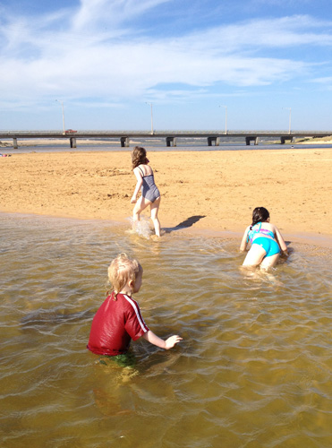 2012 has started off rather busy for us. Â The kids and I went away before New Year to my dad’s place, so Greg could get cracking on some of the renovations (yes, they are ongoing!). Â My dad happens to live near the beach and his property boarders a river, so there were many fun moments spent outdoors including tractor rides, boat rides, fishing and swimming to name a few. Â We were meant to come home New Year’s Eve, but decided to stay away a few more days as the weather was prefect for the beach. Â New Year’s Eve was spent at the Cobden Miniature Railway, which put on a fantastic family night, full of train rides, sideshow rides and fireworks. Â I can highly recommend it. Â To top it off, the weather was a perfect summer’s evening.