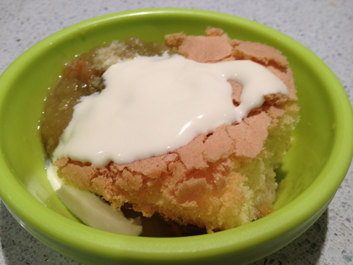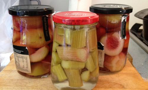But alas, I believe I made my inner granny very happy with my kitchen endeavours this afternoon, as I managed to bottle some nectarines (courtesy of a friend’s tree) and rhubarb. Â Obviously deciding that wasn’t enough, I also stewed up the rest of the rhubarb with some apples so we could have apple and rhubarb sponge for dessert. Â It’s just as well I didn’t have more fruit on hand, as I doubt it would have escaped being preserved!