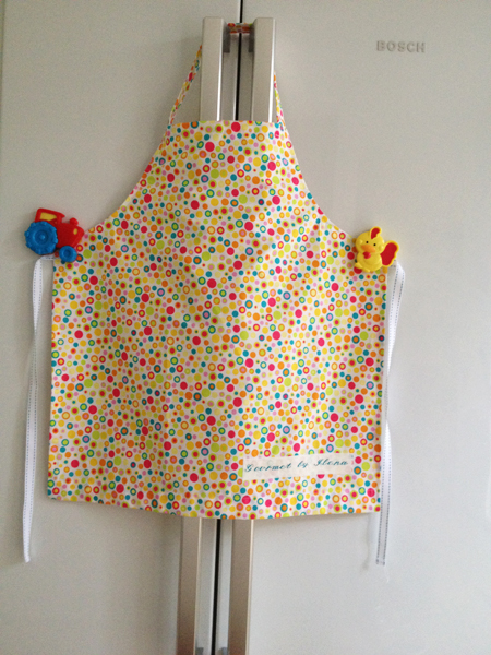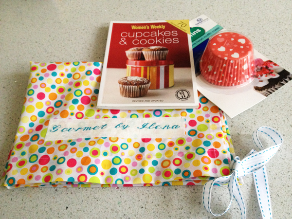 Tenneille had a school friend’s party to go to on the weekend. Â It was a cooking party, so we decided to make the gift kitchen themed. Â I made the birthday girl an apron and added a cookbook and some muffin pans to complete the gift. Â I had fun using the embroidery function on my sewing machine to add a little personal touch to the apron.