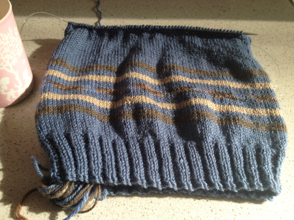 I’ve knitted a lot more since I took the picture this morning, but the sun sets now about 5.30pm, so I didn’t bother taking another picture, as the lighting will be wrong.