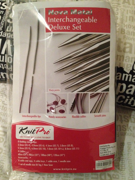 It seems the knitting bug has now well and truly bitten me. Â I finally got into the city this week and purchased my belated Mother’s Day gift. Â A KnitPro interchangeable needle set. Â I wasn’t sure whether to get the metal needles or the wooden, but after chatting to the girls at the store, they highly recommended the metal needles, so I decided to go with that. Â However, I should have done my sums, as it would have been a little cheaper to purchase them separately, as the pack comes with a couple of extras, I don’t need and there are a couple of sizes not included, that I will need to purchase separately. Â You live and learn.