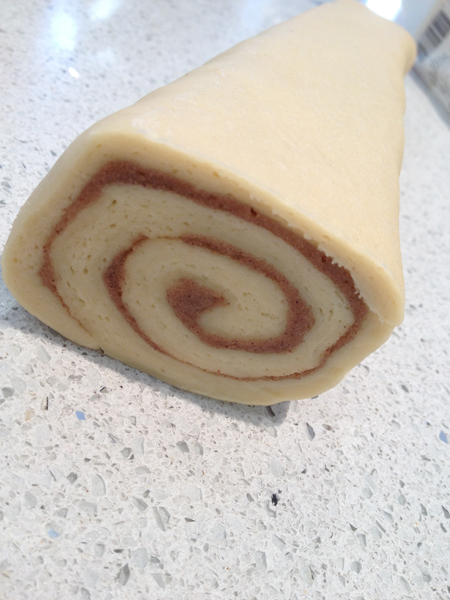 Place filling ingredients in bread machine and select dough function. Â In the meantime, mix filling ingredients with electric beaters until light and soft. Â Put aside filling. Â Once dough has risen for the desired time in the bread machine, place it on a lightly floured surface and roll out until approximately 1/2 cm thick. Â Spread dough surface evenly with filling mix. Â Roll the dough up lengthwise. Â Cut roll up into 1.5cm pieces (approx, 1″).