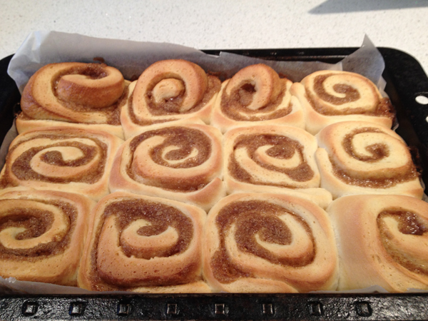 These scrolls are so yummy. Â We make them about once a month as a special treat on the weekend. Â It’s really hard not to stop at one. Â They smell divine while cooking and are best eaten still warm from the oven with a nice hot cup of tea. Â They do take a while to prepare, but they are worth it, trust me. Â I use my bread maker to prove the dough, but you can also make them without a bread maker.