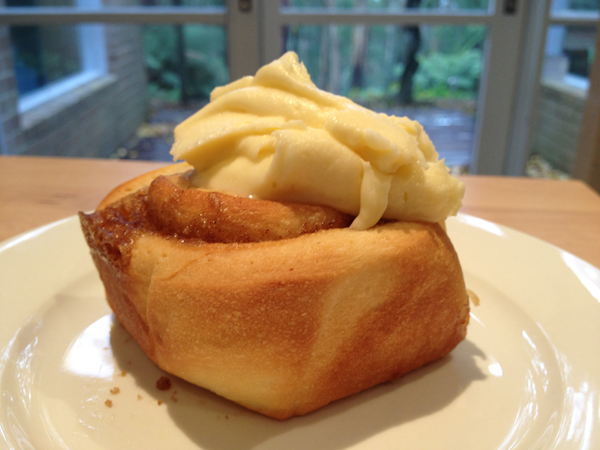 Place on baking tray lined with baking paper. Â Leave scrolls to rise in a warm place for 1 hour. Â In the meantime, beat the icing ingredients in a bowl and set aside. Â Place scrolls in a pre-heated oven @180 degrees celsius (350F) for approximately 12 minutes or until golden brown. Â Once removed from the oven, place scrolls on a plate and top with icing mixture.
