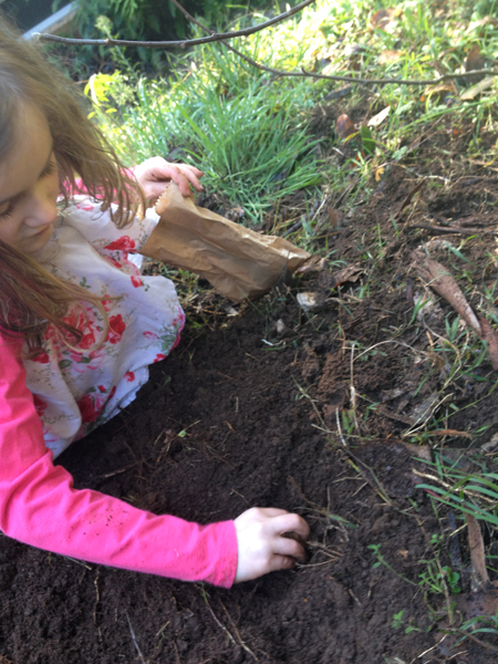 Tenneille, Jairah and I planted Tenneille’s daffodils today in the glorious sunshine. Â We can’t wait to see the daffodil’s sunny faces pop up in a couple of months.