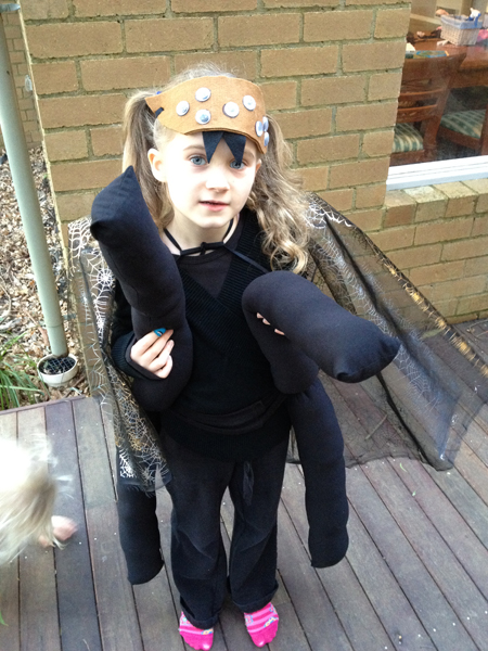 Tarantula! Â Tarantula? I hear you say. Â Tenneille’s class had a dress up day last week at school and they had to go as something that starts with their first initial. If you know my dear Tenneille, that would not be a teapot or something dainty, no a spider is so much more fitting. That girl loves her bugs dinosaurs and dragons. She wanted to go as a Pterodactyl, but that rascally silent ‘p’, fixed that idea up.