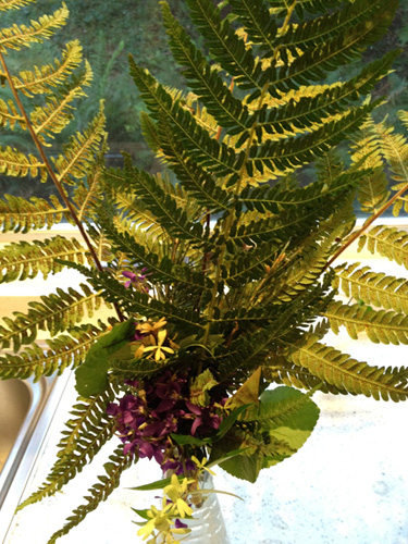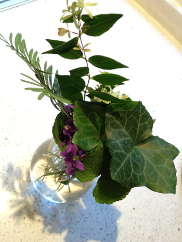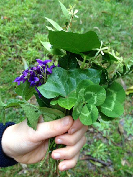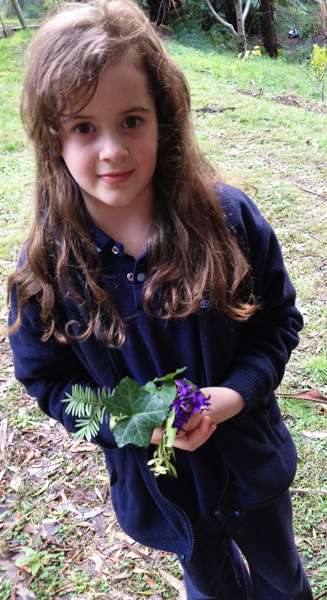 The girls chose to help each other out when one of them couldn’t reach a branch and Scarlett even offered to donate one of her four leaf clovers to Tenneille when she lost hers. Â Now that might not sound like much, but my girls certainly have a love/hate relationship sometimes. Â I don’t care if it sounds corny, but that moment made my heart proud. Â To top off a lovely afternoon, I now have some very sweet bouquets taking pride of place on my kitchen bench.