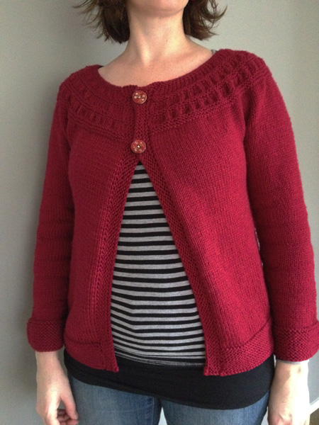 I’m so excited to be showing you my finished (ok, will need to block it) Tea Leaves cardi. Â I love it and I managed to score the last of the two most perfect buttons today a local wool store. My mum happend to be visiting today, so she offered to take a couple of pictures for me, as I was busting to share the cardi with you all. Â I can honestly say this is one of the easiest patterns to follow and it fits beautifully. Â I knitted the 36″ size. Â I added a little length to the sleeves and a little extra to the body to get a better fit, but otherwise, the shaping is perfect. Â If you have been contemplating knitting this, I say go ahead and treat yourself. Â You won’t be disappointed. Â My Ravelry notes are here.