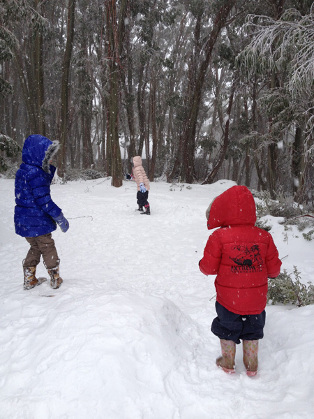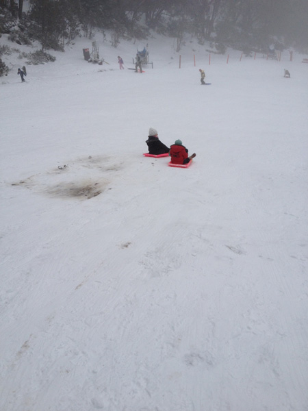 At the beginning of winter, we promised the kids we would take them to the snow. Â After watching the snow report for a good month, we figured Monday was the day. Â The kids were so excited all morning and I will admit now, it was a long two hour drive to Mt Baw Baw! Â Ah yes, there were many deep (exasperated) breaths from both Greg and I. Â Finally reaching the top of the mountain, after enduring snow chains (think corrugated roads), we all rugged up within an inch of our lives and headed off to hire toboggans. Â The kids took to the toboggan run like pros and there was no stopping them. Â They had no fear and even Jairah was zooming down the slope giggling his head off.