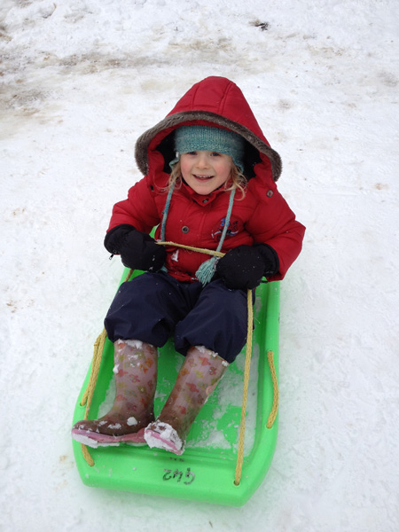 Greg and I were impressed with how well our kids got along all day. Â There was no fighting, bickering or nagging, instead, they took turns of the two toboggans and the girls happily played side by side, all the while copious amounts of snow was being consumed. Â It was all so much fun, none of us wanted to go home! Â Next time, we will certainly make it a mini family holiday and go for a couple of days. Â The car trip home was much quieter and I swear there were smiles upon some very sleepy lips.