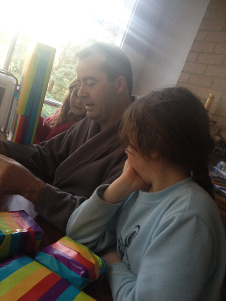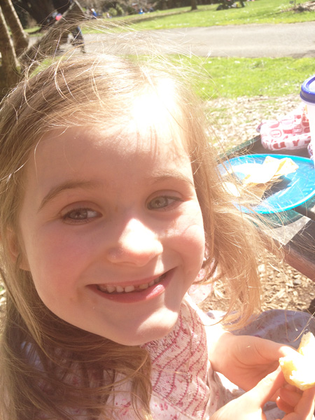 We celebrated Father’s Day this past Sunday. Â Greg got a ‘sleep in’ (ok, I think it was more along the lines of being jumped on by Jairah), while I cooked us a hearty breakfast. Â The girls had lovingly wrapped his presents and made him gorgeous cards. Â A picnic has been on the cards all week and thankfully the weather gods were smiling upon us making a picnic possible. Â I can’t tell you how good the warm sun felt on our faces. Â Isn’t it amazing how a little sunshine, blue sky and fresh air can make all the difference. Â We were lucky enough to find a picnic spot with table and seats, although the girls would have preferred a picnic rug, but alas, we don’t have one currently. Â Although, that is my next craft project!