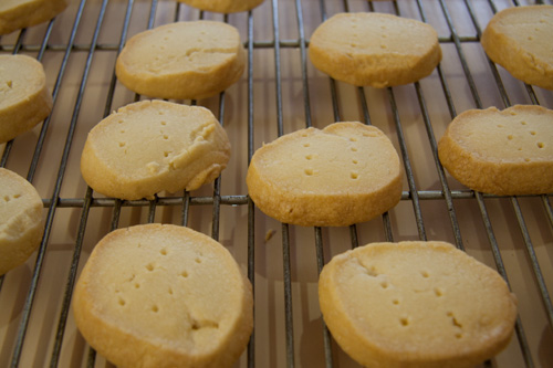 This is my mum’s recipe. Â Thanks mum! Â I think it makes the BEST shortbread. Â It is very simple and you can make the dough and refrigerate it or freeze it for later. Â The smell of it cooking is divine. Â Warning- you can’t stop at just one piece!