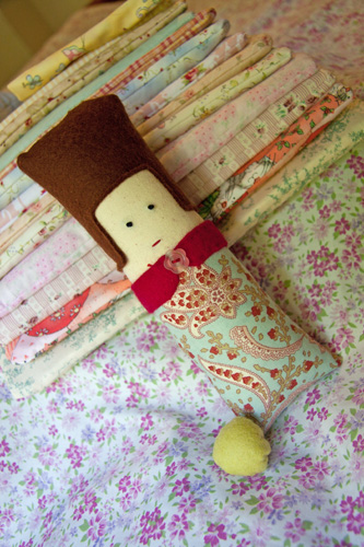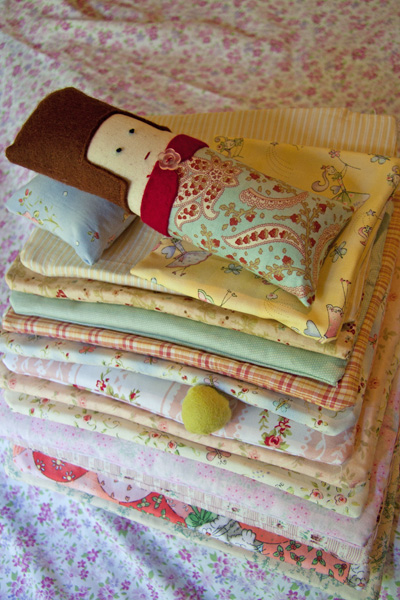 After burning the midnight oil, I think  I am finally finished making the girls gifts.  The princess, pea and her many mattresses are finished.  I think I want her all to myself!  I had lots of fun making her.  The pattern is out of the book, More Softies, published by Penguin Viking.
